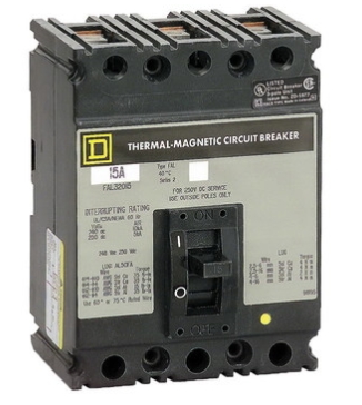 MOLDED CASE, THERMAL MAGNETIC TYPE, 4.5 INCH W X 4.13 INCH D X 6 INCH H SIZE, 480 V MAX. AC VOLTAGE RATING, 250 V MAX. DC VOLTAGE RATING, UL, CSA APPROVAL, 240/480 VAC AT 50/60 HZ, 480 VAC STAR/277 VAC AT 50/60 HZ (UL/CSA/NOM), 415 VAC AT 50/60 HZ (IEC), 250 VDC VOLTAGE RATING, 10/25 KILOAMPERE AT 240 VAC, 18 KILOAMPERE AT 480 VAC STAR/277 VAC OR 480 VAC (UL/CSA/NOM), 10 KILOAMPERE AT 415 VAC (IEC), 10 KILOAMPERE AT 250 VDC INTERRUPTING RATING, 20 AMPERE CURRENT RATING, 3 POLE(S), LINE LUG, LOAD LUG TERMINAL TYPE, F FRAME TYPE, FA MODEL Molded Case