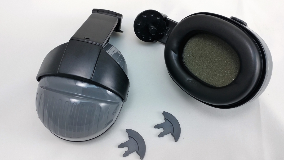 MSA Sound Blocker 26 earmuffs for cap mounting to a face shield frame. The earmuffs provide excellent noise reduction of 26 dba.