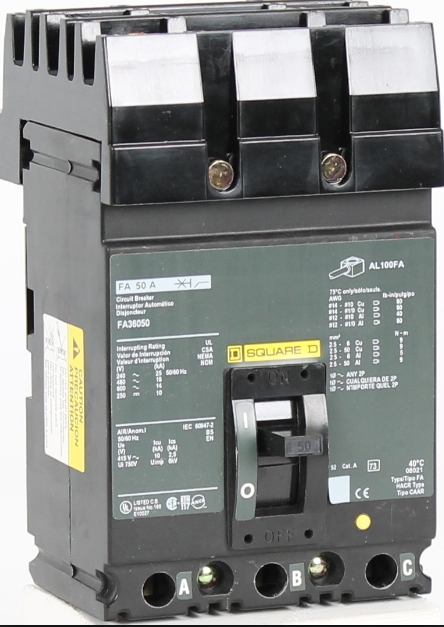 CLASS 650/734/820 I-LINE[R] PANELBOARD/SWITCHBOARD USED ON, UL, CSA APPROVAL, POWER DISTRIBUTION APPLICATION, 240/480/600 VAC AT 50/60 HZ, 480 VAC STAR/277 VAC AT 50/60 HZ, 600 VAC STAR/347 VAC AT 50/60 HZ (UL/CSA/NOM), 415 VAC AT 50/60 HZ (IEC), 250 VDC VOLTAGE RATING, 10/25 KILOAMPERE AT 240 VAC, 18 KILOAMPERE AT 480 VAC STAR/277 VAC OR 480 VAC, 14 KILOAMPERE AT 600 VAC STAR/347 VAC OR 600 VAC (UL/CSA/NOM), 10 KILOAMPERE AT 415 VAC (IEC), 10 KILOAMPERE AT 250 VDC INTERRUPTING RATING, 50 AMPERE CURRENT RATING, 3 POLE(S), 400 TO 850 AMPERE TRIP SETTING, I-LINE[R] BRAND, FRAME TYPE F, MOUNTING TYPE PLUG ON, TERMINAL WIRE SIZE 12 TO 1/0 AWG (ALUMINUM), 14 TO 1/0 AWG (COPPER), SIZE 4.5 INCH W X 4.13 INCH D X 6 INCH H, TRIPPING METHOD THERMAL MAGNETIC, FA MODEL Molded Case Circuit Breakers from Square D